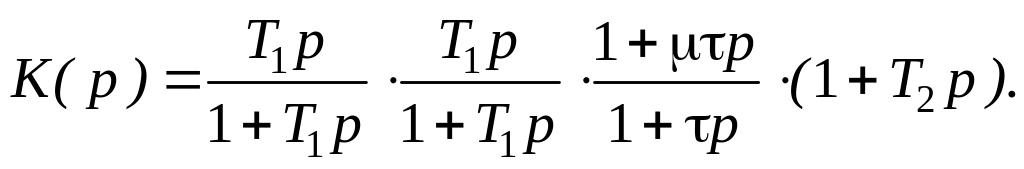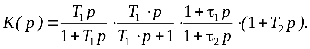 Складову в чистому виді реалізувати неможливо. Використаємо наступний прийом: вводимо в склад аперіодичну ланку з передаточною функцією . При цьому вибирається виходячи з того, щоб була набагато більше за найбільшу частоту системи, тобто . Тоді складова реалізується в складі у вигляді . При цьому, ланка практично не буде впливати на роботу системи, тому що її спряжуюча частота буде знаходитися за межами робочого діапазону частот системи.