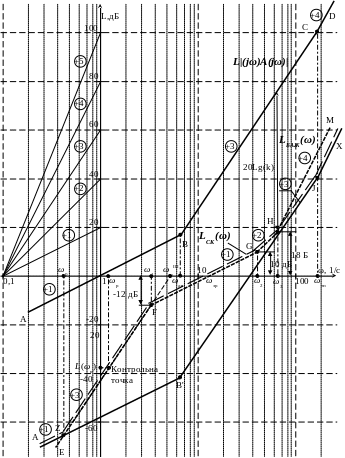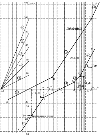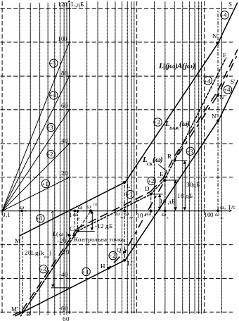 Після вищеописаних побудов ЗЛАЧХ розімкненої скоригованої САУ буде мати вид ламаної ламаною M'CDERN''S''.