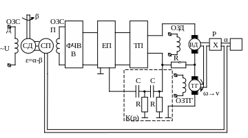 - •Принципова схема слідкуючої сау зі зворотнім зв’язком за струмом та швидкістю