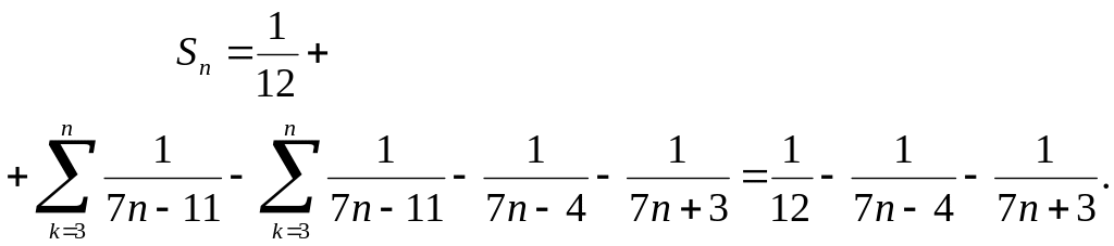 Онда (1) жәй бөлшекті пайдаланып берілген сандық қатардың n-дербес мүшесін мына түрде жазуға болады: