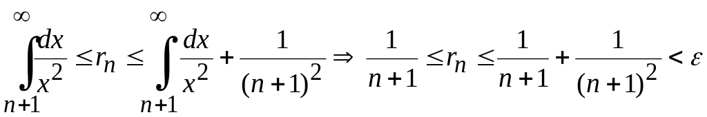 Демек, меншіксіз интеграл жинақты. Онда оған сәйкес қатары жинақты. Өз кезегінде, (*) ара қатынасты еске алсақ, жинақтылықтың салыстыру белгісі бойынша, берілген қатардың жинақтылықтылығы шығады.