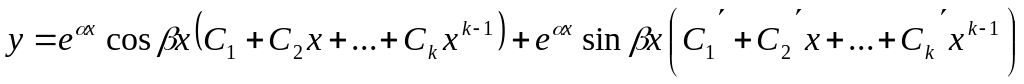ә) Егер — сипаттаушы теңдеудің еселі комплекс түбірі болса, онда, 1°- бөлік сияқты, берілген (9.89) теңдеудің оң жағы (9.91) түрде болғанда, оның дербес шешімі