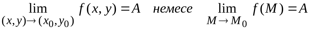 Енді көп айнымалы функциялар шегінің кейбір қасиеттерін атап өтейік сонымен бірге олардың бір айнымалы функциялар шегінің қасиеттеріне ұқсас екендігін көреміз.