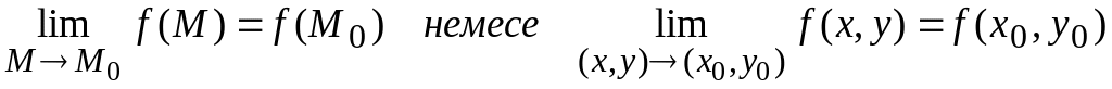 Ескерту. Көп айнымалы функциялардың келтірілген үзіліссіздік анықтамалары, барлық айнымалылар жиынтығы бойынша үзіліссіздік болып табылады.
