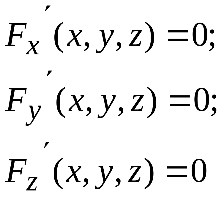 теңдеулер жүйесін алуға болады. Ал экстремумның сипатын (түрін) анықтау үшін жоғарыдағы келтірілген жеткілікті шарттарды пайдалануға болады.