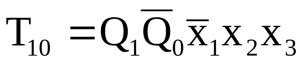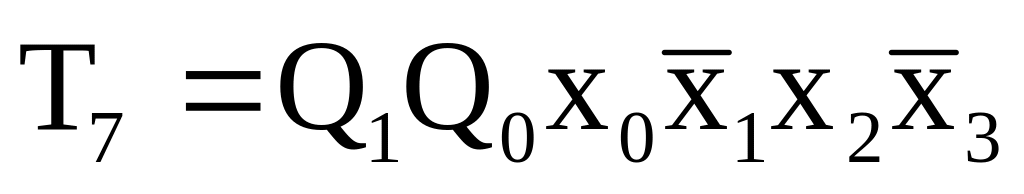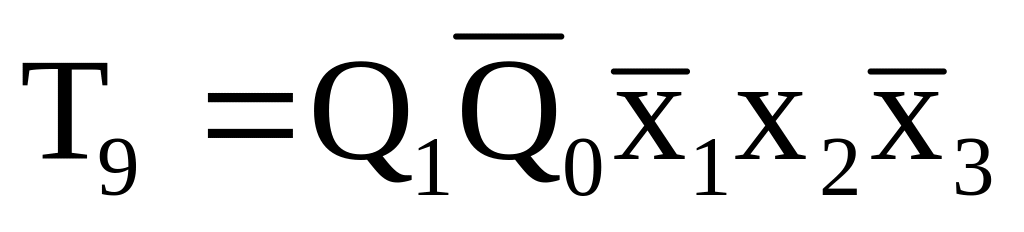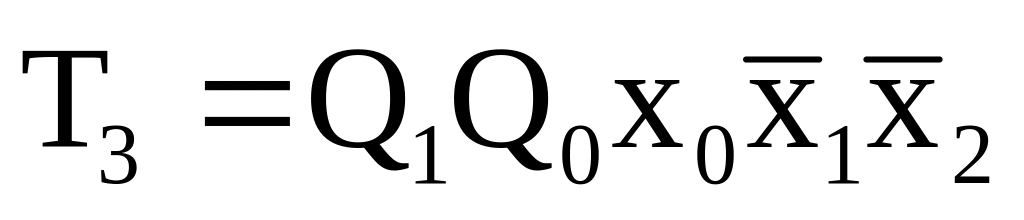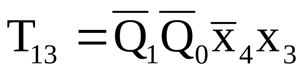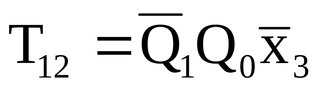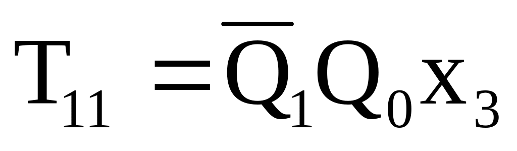 Рассмотрим на примере обратной структурной таблицы автомата Мили на жесткой логике (см. л. р. № 4). Таблица 2 из л. р. № 4. дополнена столбцом T(am,as) — функция переходов Ti, в которых состояние ai выражены через Qi — состояние элементов памяти.