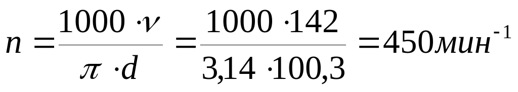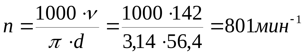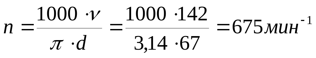 Число оборотов шпинделя, соответствующее рекомендуемой скорости резания: