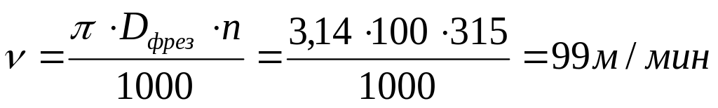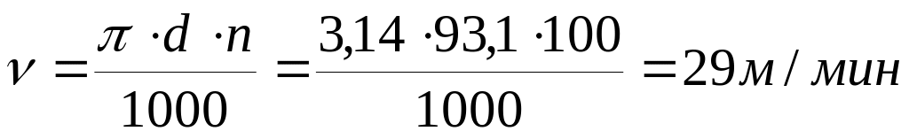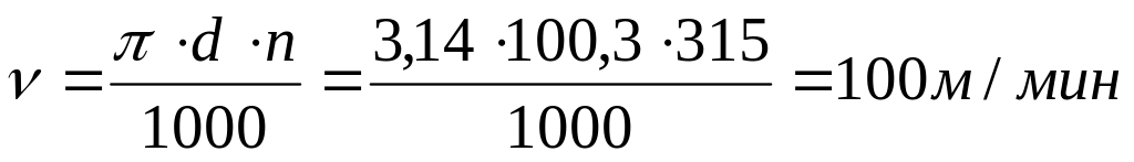 Уточнение скорости резания по принятым оборотам шпинделя: