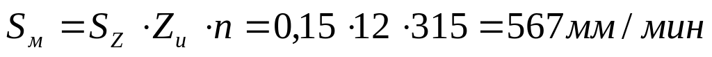Рекомендуемая подача на зуб (карта Ф-2 в [6], стр. 85):