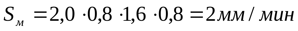 Подача на оборот шпинделя станка (карта С-2 в [6], стр. 110):