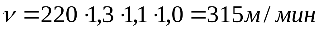 Рекомендуемая нормативами скорость резания (карта С-4 в [6], стр. 115): , где