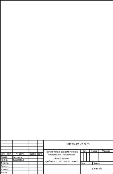 по теме: Расчет технико-экономических показателей сборочного цеха приборостроительного вода