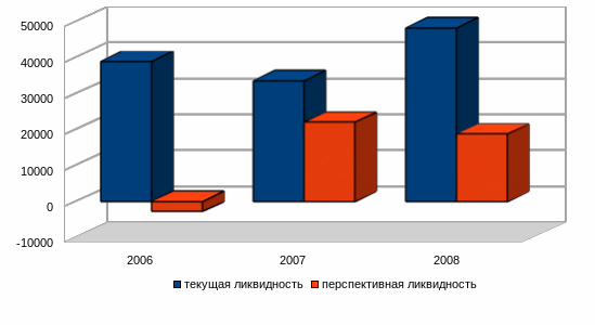 Рисунок 8 - Динамика текущей и перспективной ликвидности предприятия за 2007-2009 гг