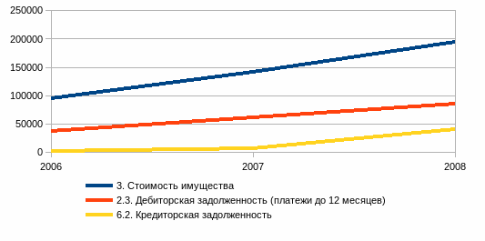 Как видно из рисунка, стоимость имущества предприятия возрастает вместе с ростом кредиторской задолженности. Это объяcняется тем, что предприятие не погашает свою задолженность перед бюджетом.