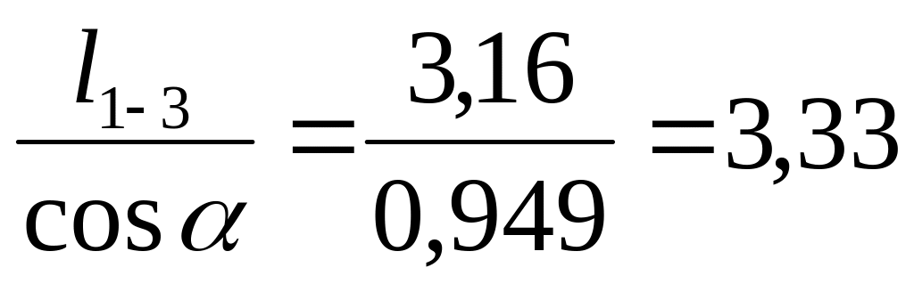 Длина стойки: l3-11= l1-3 tg α = 3,16*0,333 = 1,05 м.