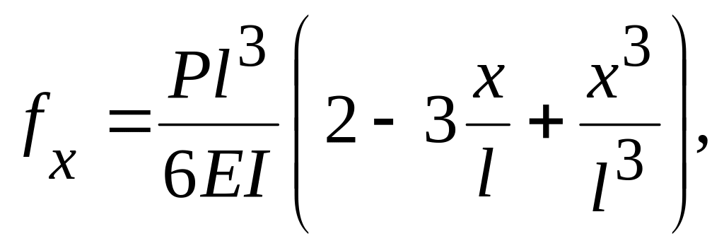 Під дією складової Рz (або Рх) сили різання консольна частина різця прогинається. Величина прогину на відстані х від вершини різця може бути визначена за рівнянням: