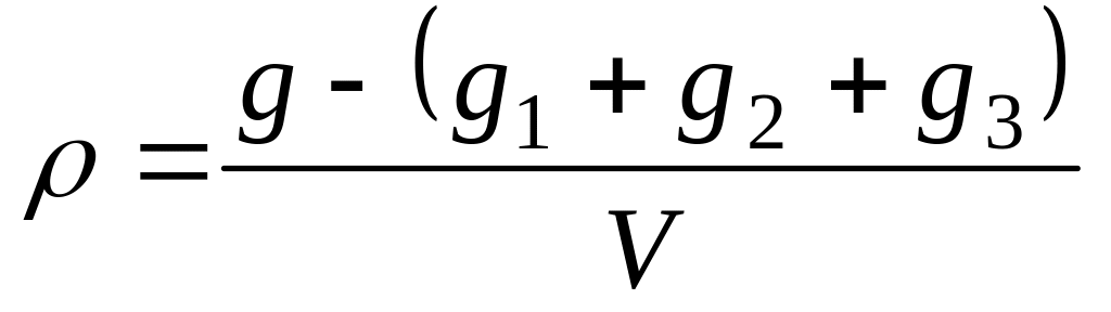 g - масса кольца с грунтом и покрывающими стеклами, г; g1- масса кольца, г; g 2 + g3 - масса стекол, покрывающих грунт, г; V – объем грунта, равный внутреннему объему кольца, см.