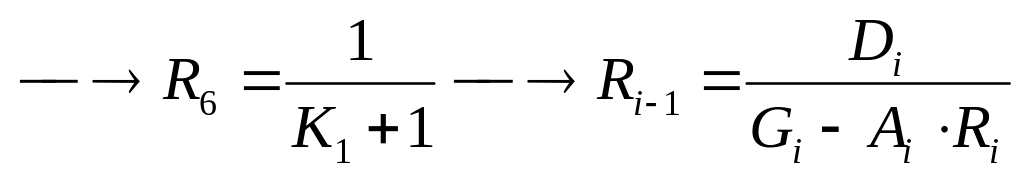 Рассчитываем интерполяционные коэффициенты R, двигаясь влево: