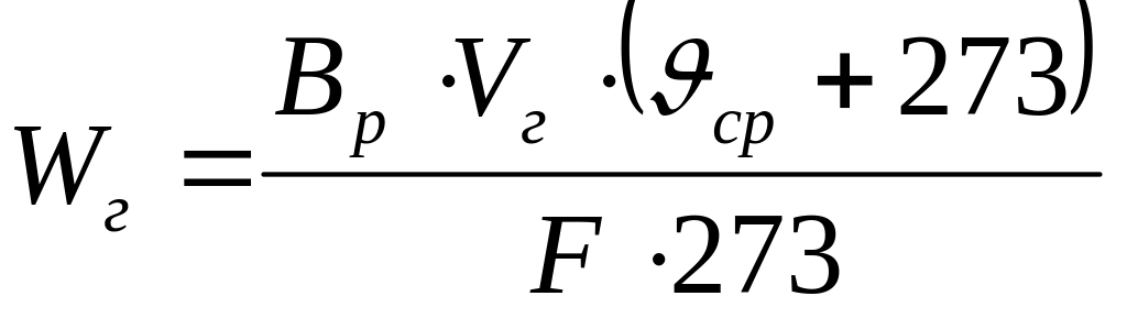 Расчетная скорость продуктов сгорания Wг, м/с, определяется по формуле