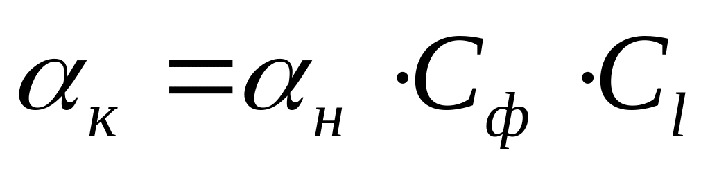 – коэффициент теплоотдачи излучением продуктов сгорания, рассчитывается только для вторых ступеней воздухоподогревателей.