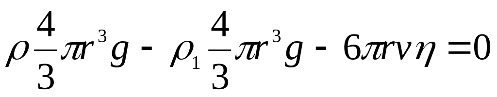 При падінні кульки сила тяжіння направлена вниз, виштовхувальна сила та сила тертя направлені вгору. Під час руху кульки швидкість її збільшується, а значить, росте і сила внутрішнього тертя. За деякого значення швидкості кульки сили, які діють на неї, урівноважуються. Рух кульки при цьому буде прямолінійним та рівномірним. Кулька буде рухатись по інерції зі сталою швидкістю v. У даному випадку маємо: