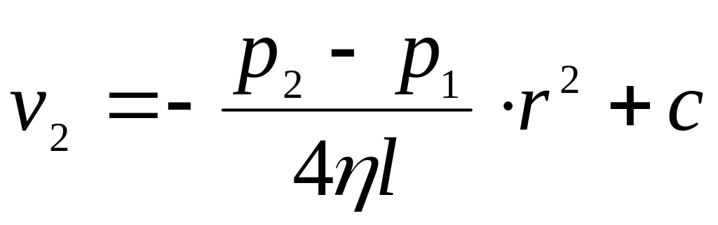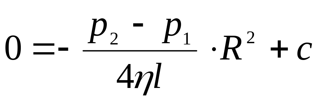 Постійну інтегрування с визначимо з граничних умов: біля стінок труби, де r=R, v=0 тобто: