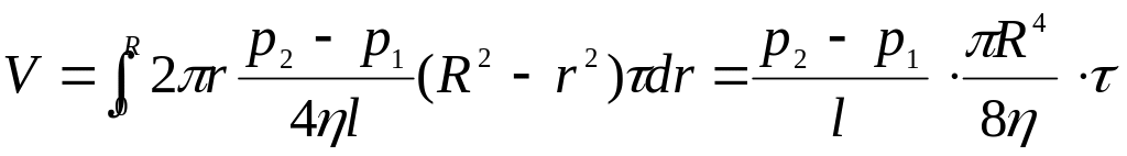 Підрахуємо об’єм рідини, що протікає через усі перетини труби за час . Для цього розіб’ємо його на кільця малої товщини dr, так, що швидкості уздовж всього кільця можна вважати однаковими. Виділимо одне з цих кілець радіусу r і товщиною dr. Площа такого кільця дорівнює:
