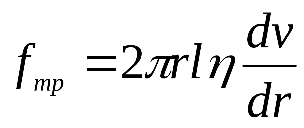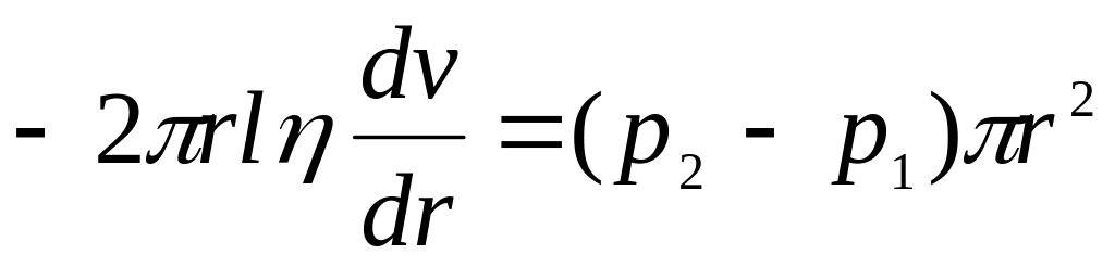 Знайдемо розподіл швидкостей в потоці в залежності від відстані до осі труби. Для цього виділимо із загального об’єму рідини циліндр радіусом r (рис.12.3). На одиницю площі його бокової поверхні діє сила в’язкості: