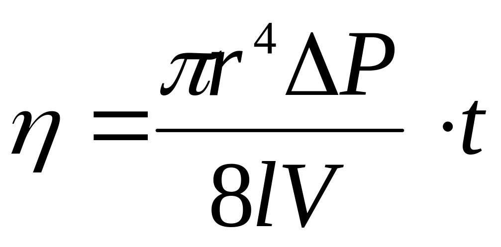 де V − об’єм газу, який витікає через капіляр за час t; r − радіус капіляра; ΔР − різниця в тиску на кінцях капіляра; l − довжина капіляра.