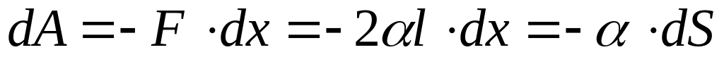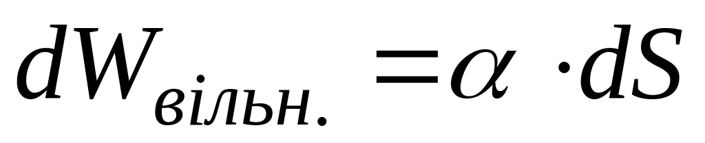 де dS – приріст поверхні поверхневого шару. Припустимо, що дослід здійснюється за ізотермічних умов, тобто T=const. При цьому процесі робота дорівнює зменшенню вільної енергії, тому