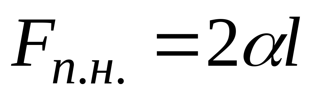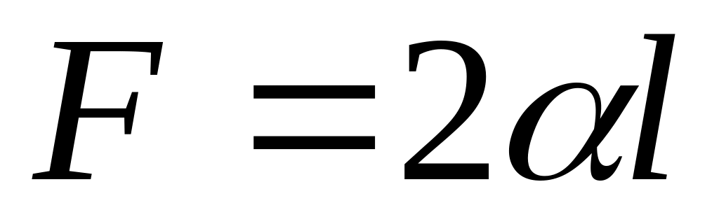 де l – довжина перекладини; α – сила поверхневого натягу, що приходиться на одиницю довжини контуру (цю величину називають коефіцієнтом поверхневого натягу).