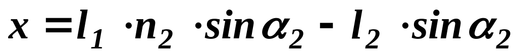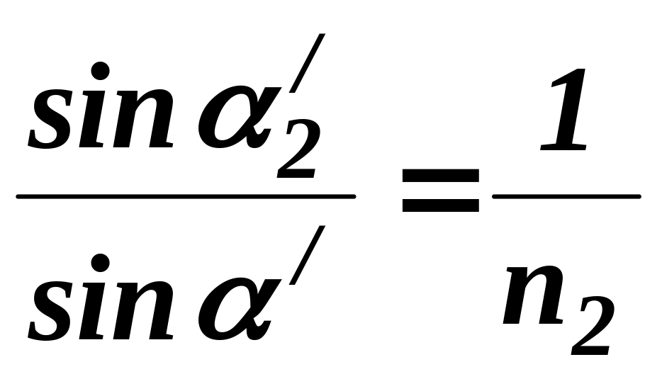 Напишемо співвідношення (2.2) для усіх трьох поверхонь заломлення. При цьому для першої поверхні треба взяти відносний показник заломлення речовини по відношенню до вакууму. Таким чином,
