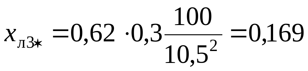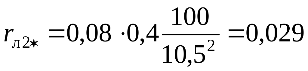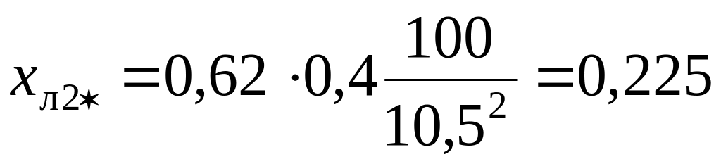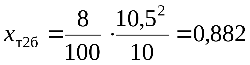 4. Определяем сопротивления элементов схемы в именованных единицах до точки К2 и одновременно приводим их к базисному напряжению Uб = 10,5 кВ.