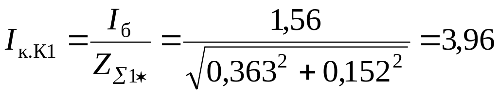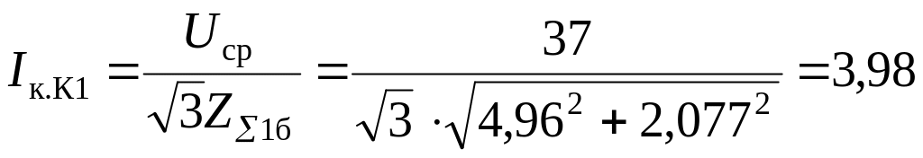 3. Определяем ток, кА, КЗ в точке К1. Так как условие для точки К1 не выполняется, то учитываем в расчетах активное сопротивление: