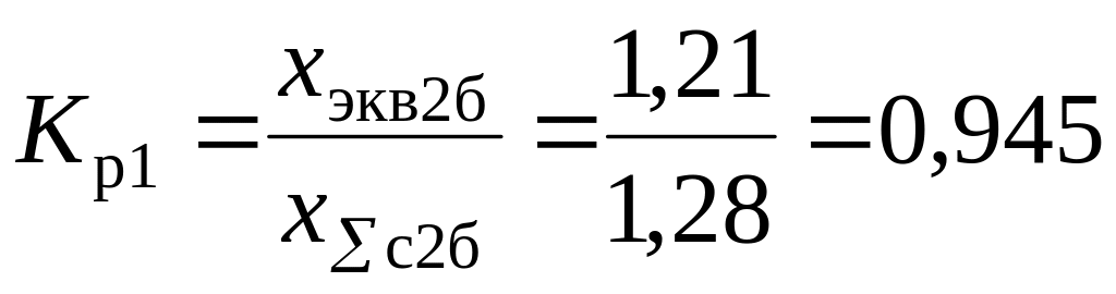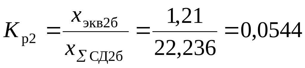 Объединять систему бесконечной мощности и синхронный двигатель нельзя, поэтому определяем токи с помощью коэффициентов распределения. Находим эквивалентное сопротивление, Ом, от источников питания, коэффициенты распределения и результирующие сопротивления до точки К2 по (3.11), (3.13):