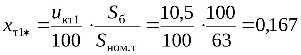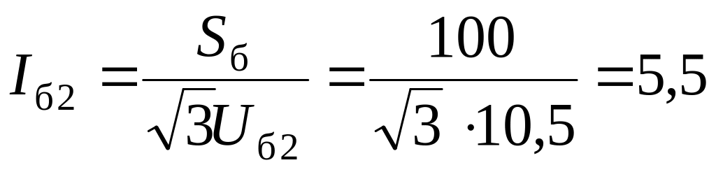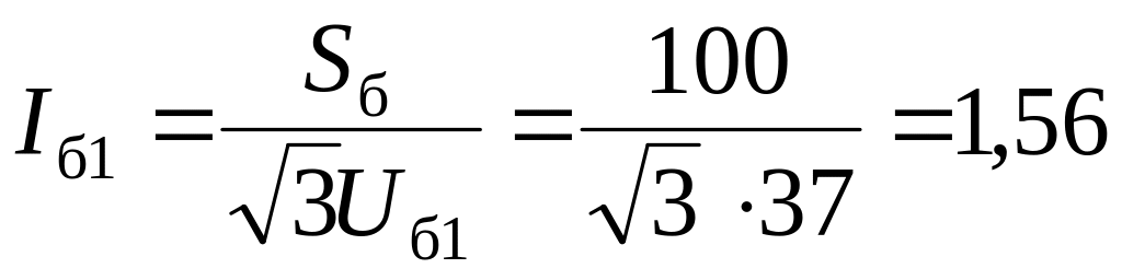 1. Принимаем за базисные единицы Sб = 100 МВ∙А и средние напряжения ступеней Uб1 = 37 кВ; Uб2 = 10,5 кВ. Определяем базисные токи по (3.4), кА