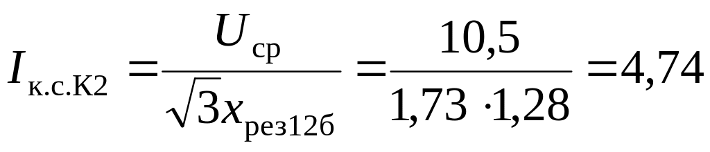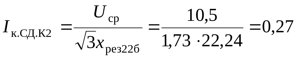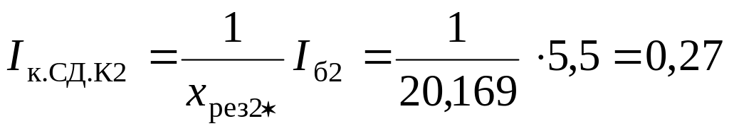 6. Определяем токи, кА, в точке К2 отдельно от системы и от синхронного двигателя: