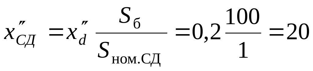 5. Определяем суммарное сопротивление со стороны системы и со стороны синхронного двигателя до точки К2: