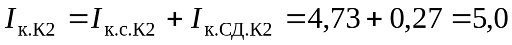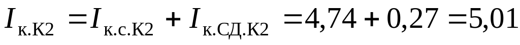 Суммарный ток, кА, в точке К2: