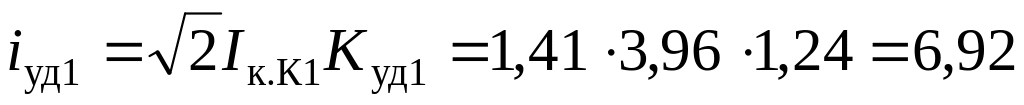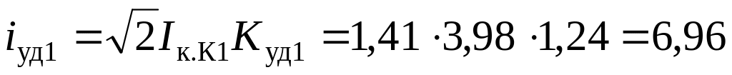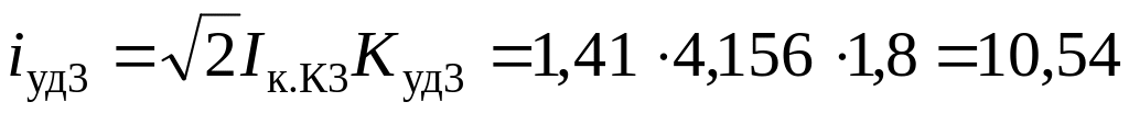 10. Определяем ударные токи, кА, в точках К2, К3. Находим ударные коэффициенты (табл. 3.20), Kуд1 = Kуд2 = 1,8: