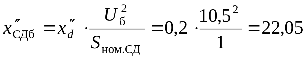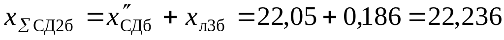 6. Определяем суммарное сопротивление, Ом, со стороны системы и со стороны синхронного двигателя до точки К2: