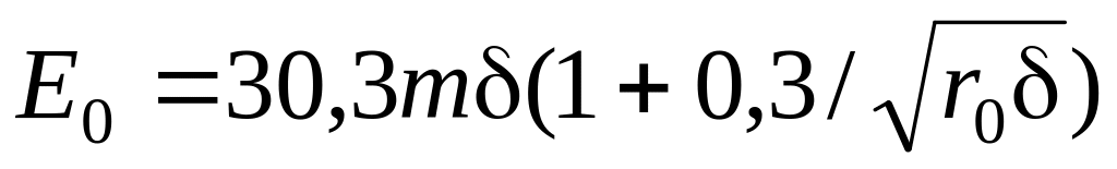 где U – линейное напряжение, кВ; r0 – радиус проводника, м; Dср – среднее геометрическое расстояние между проводниками (шинами), см; m – коэффициент негладкости проводника (для многопроволочных проводников m = 0,82; для горных условий m = 0,7−0,75); δ – относительная плотность воздуха.