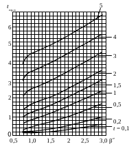 Рис. 4.4. Кривые приведенного времени периодической слагающей тока при питании от генератора с АРВ |