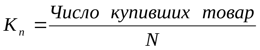 степень первичного проникновения товара. Первичный спрос связан с количеством потребителей, попробовавших товар хотя бы раз для товаров «быстрого» употребления (например, продукты питания), или владеющих хотя бы одним изделием, если речь идет о товарах длительного пользования (например, телевизорах). Коэффициент первичного проникновения (Кп) можно рассчитать как: