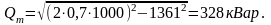 Затем определяют первую составляющую мощности батареи конденсаторов по формуле