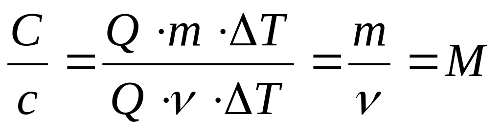 Молярная теплоемкость вещества C - количество теплоты, необходимое для нагревания на 1K 1 моля вещества: