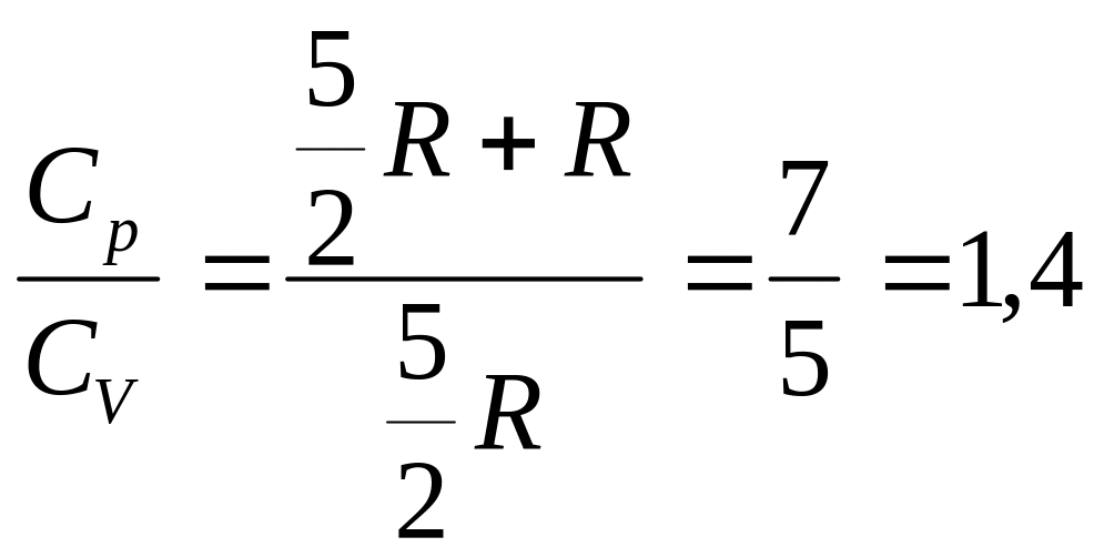Для воздуха, который представляет собой смесь газов, в которой 80% азота N2 и почти 20% кислорода O2 , γ=1,4.