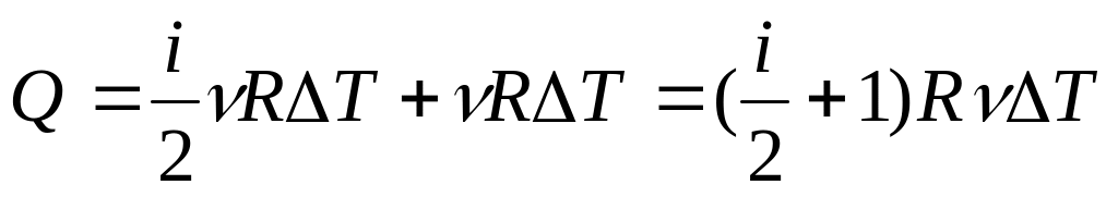 при постоянном давлении требуется больше тепла для того, чтобы повысить температуру моля газа на 1 К, чем при постоянном объеме. Это понятно, так как при постоянном объеме все подводимое тепло идет на нагрев, поскольку работа не совершается (газ не расширяется и не сжимается). При постоянном давлении лишь часть подводимого тепла расходуется на нагрев, а другая часть – на совершение работы.