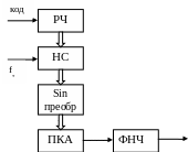 С помощью синусоидального преобразователя осуществляется переход от кода фазы к коду отсчетов самого колебания. Из кода отсчета этого сигнала с помощью ПКА формируется непрерывный сигнал.