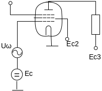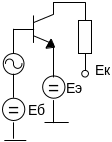 сеточное смещение (Ес) базовое и эмиттерное смещение (Еб и Еэ);